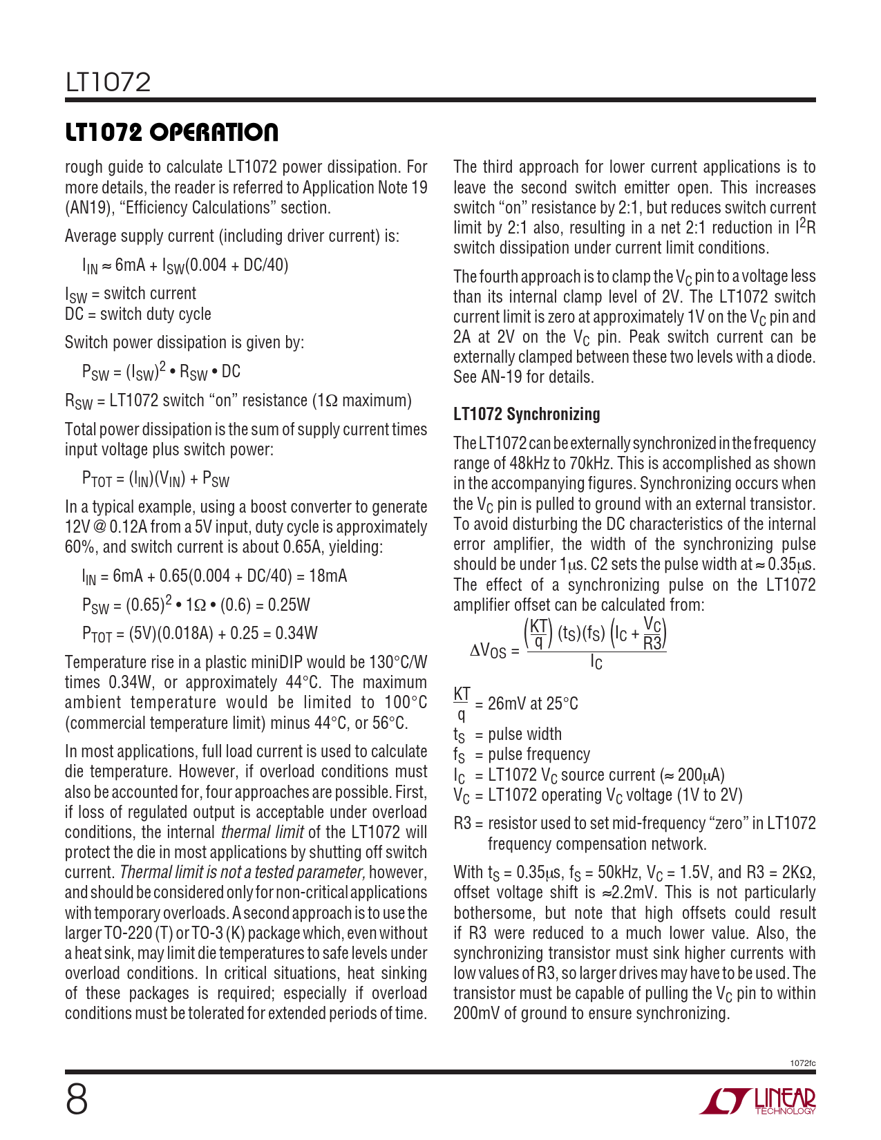 页数 / 页16 / 8 — LT1072 OPERATIO. LT1072 Synchronizing