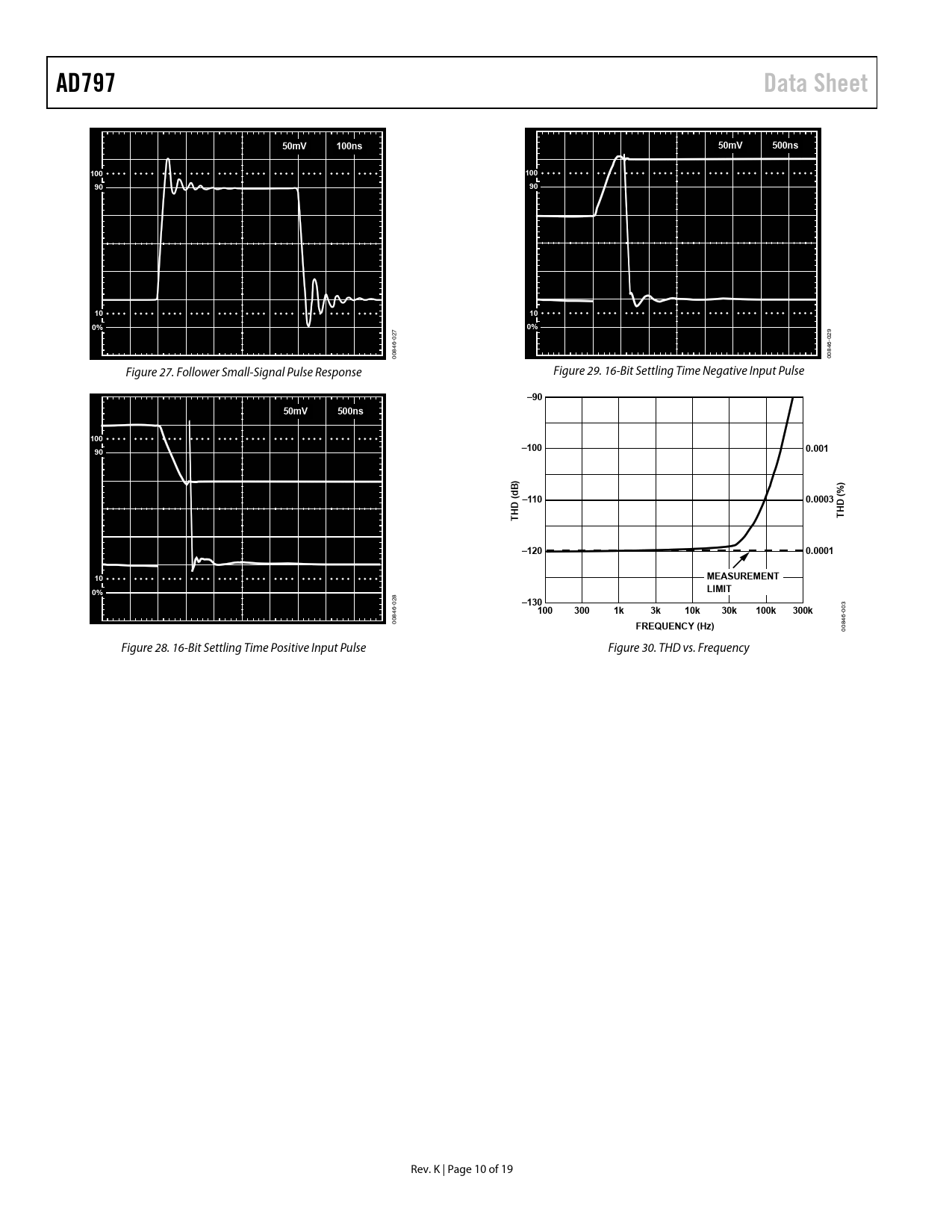 AD797. Data Sheet. 50mV. 100ns. 500ns. 100. –90. –100. 0.001. –110. 0.0003. HD (. –120. 0.0001. MEASUREMENT. LIMIT. –130. 300. 10k. 30k. 100k. 300k. FREQUENCY (Hz)
