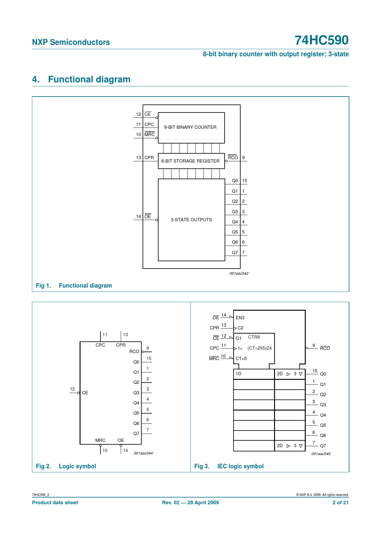 NXP Semiconductors. 74HC590. 8-bit binary counter with output register; 3-state. Functional diagram. Fig 1. Fig 2. Logic symbol
