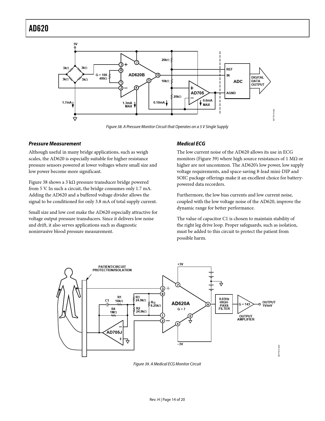 页数 / 页20 / 14 — AD620. 20k. REF. G = 100. AD620B. DIGITAL. 499. 10k. ADC. DATA. OUTPUT. …