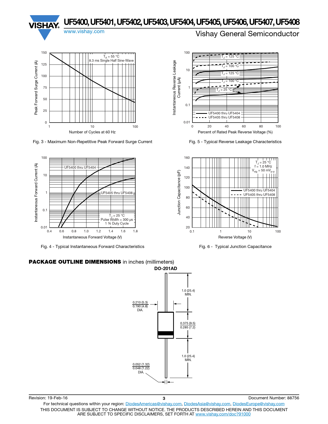 Datasheet UF5400, UF5401, UF5402, UF5403, UF5404, UF5405, UF5406, UF5407, UF5408 (Vishay) - 3