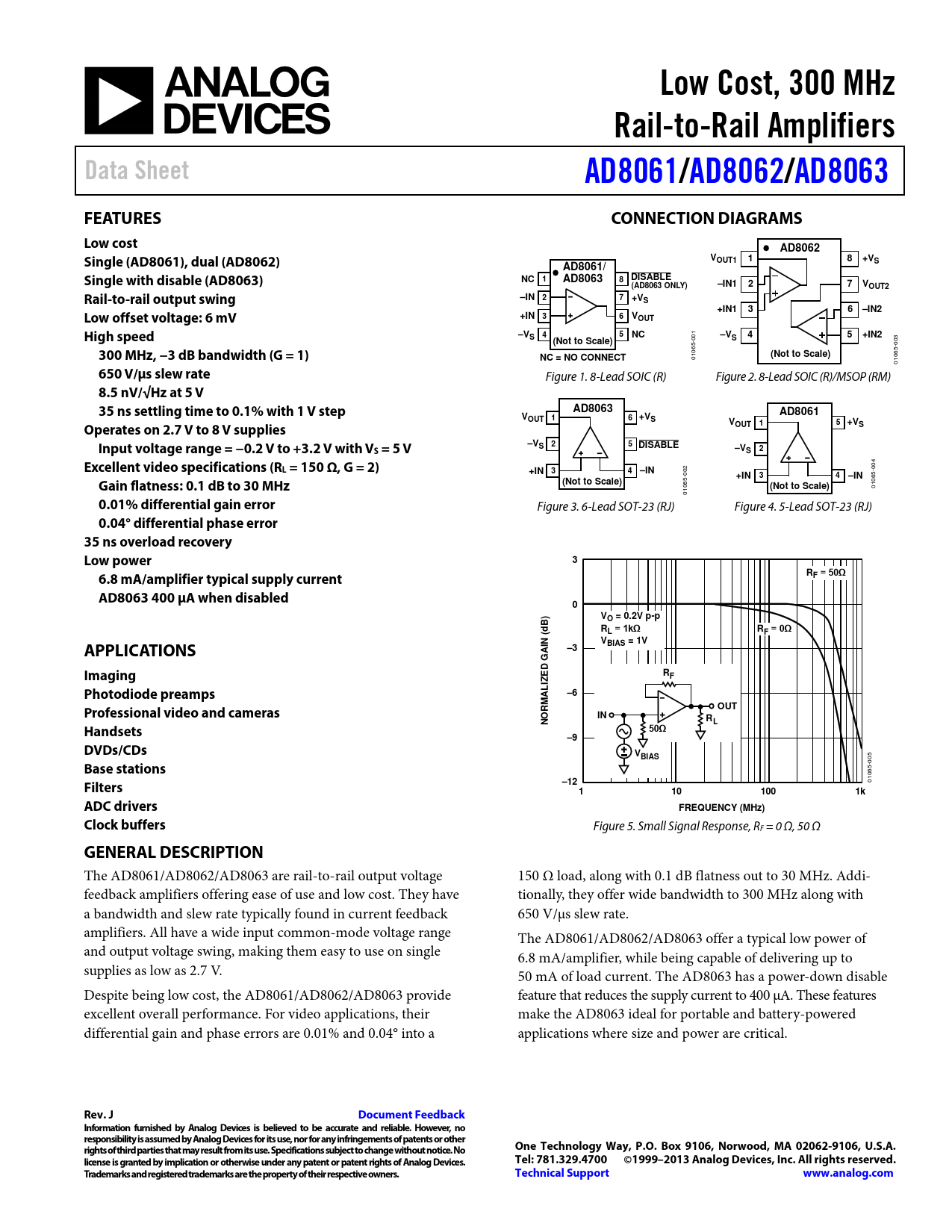 Datasheet AD8061, AD8062, AD8063 (Analog Devices)