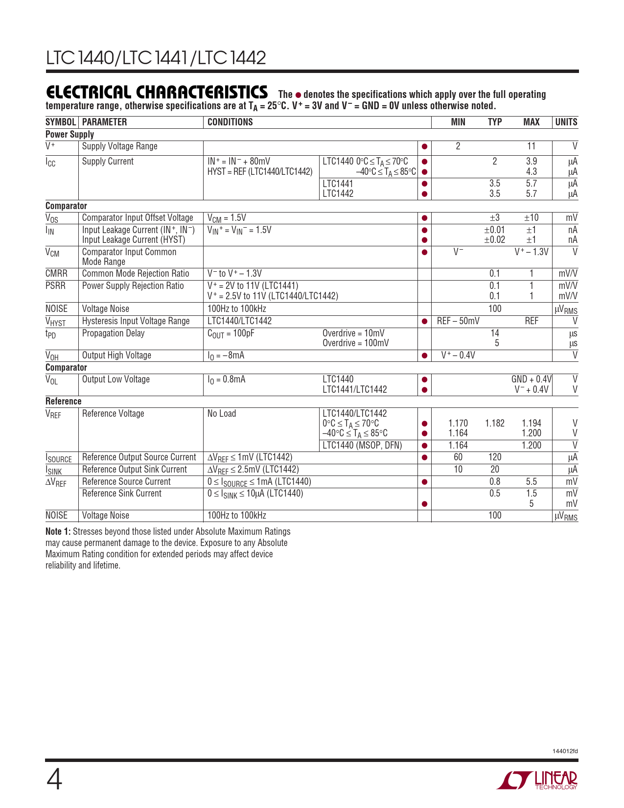 Datasheet LTC1440, LTC1441, LTC1442 (Analog Devices) - 4