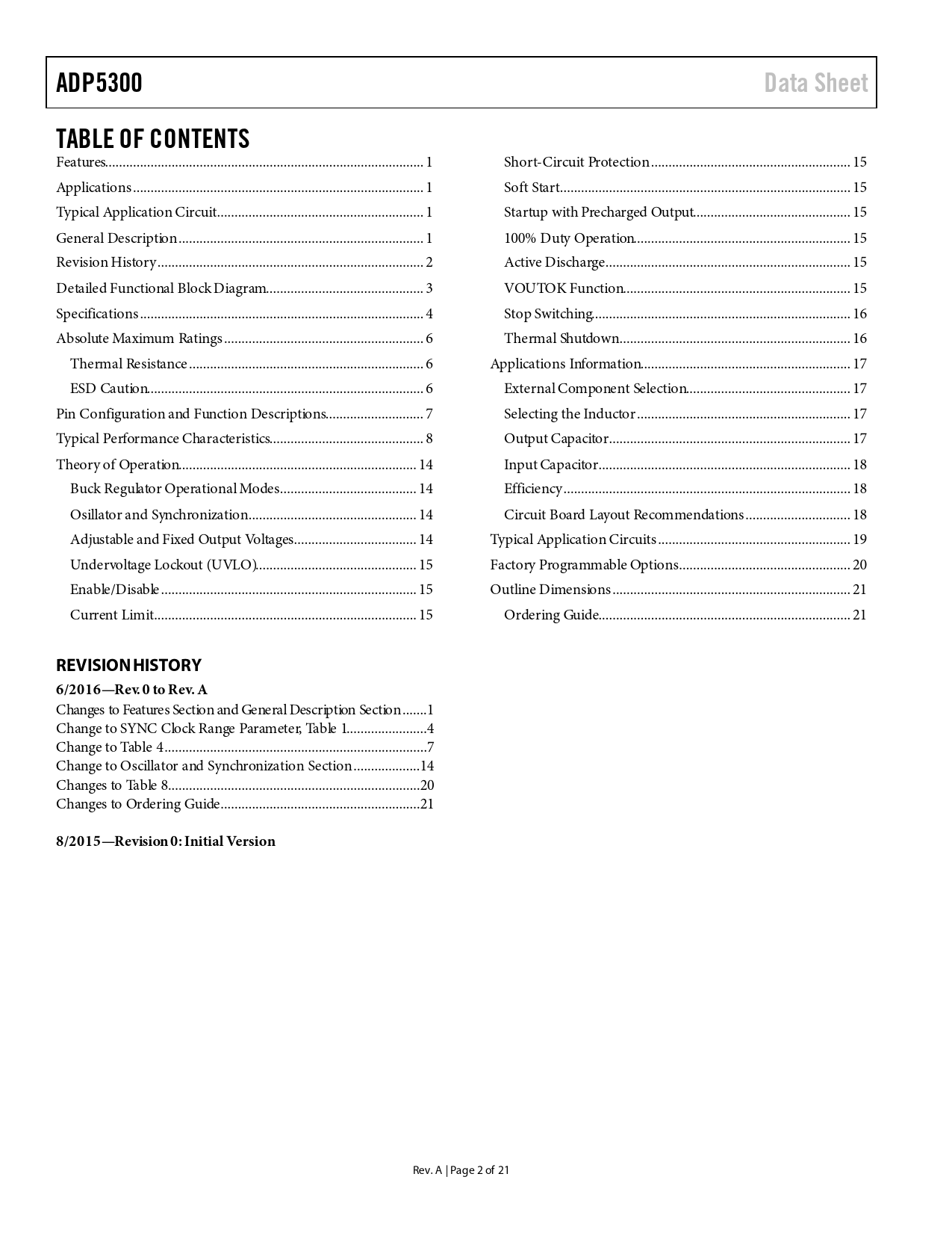 页数 / 页21 / 2 — ADP5300. Data Sheet. TABLE OF CONTENTS. REVISION HISTORY 6/2016—Rev. 0 to …