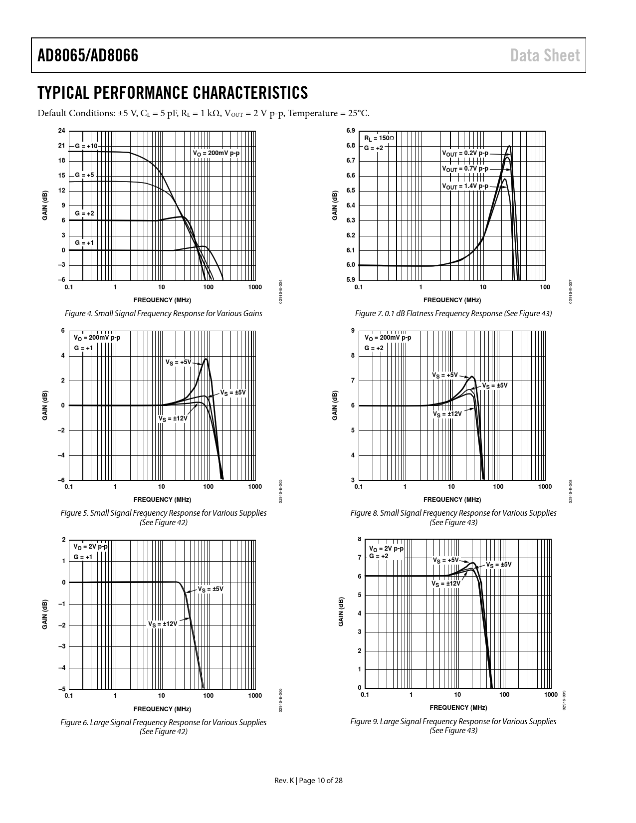 AD8065/AD8066. Data Sheet. TYPICAL PERFORMANCE CHARACTERISTICS. 6.9. RL = 150. G = +10. 6.8. G = +2. VO = 200mV p-p. VOUT = 0.2V p-p. 6.7