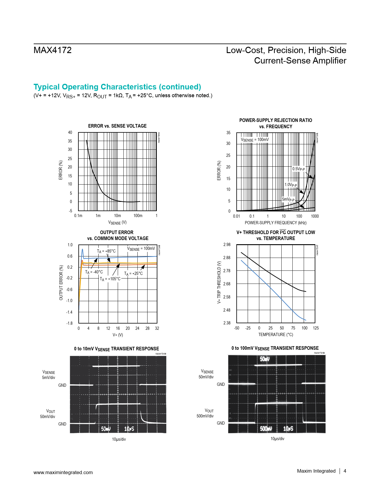 MAX4172-08 MAX4172-09 VSENSE VSENSE 5mV/div 50mV/div GND GND VOUT VOUT 50mV/div 500mV/div GND GND 10µs/div 10µs/div www.maximintegrated.com Maxim Integrated │ 4