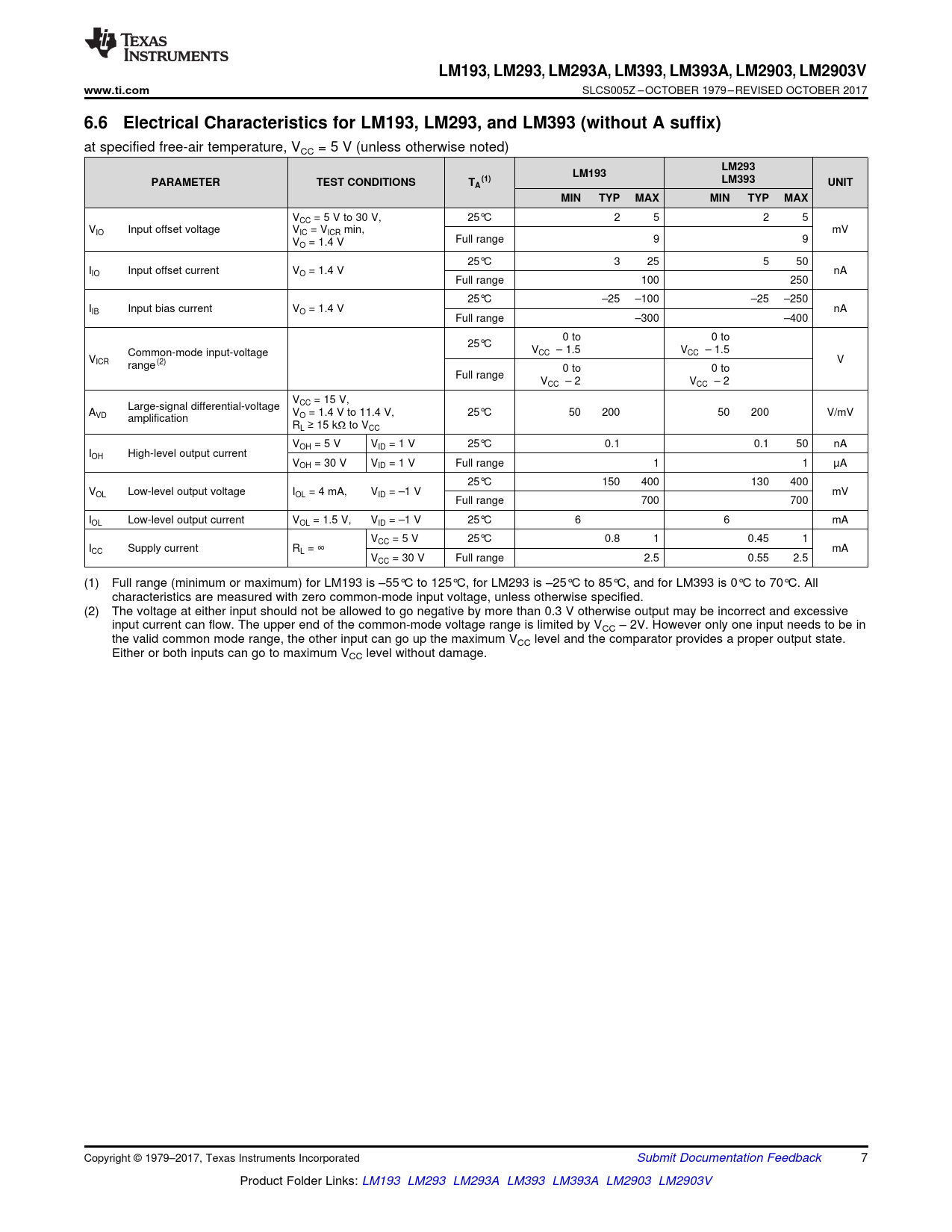 Datasheet LM193, LM293, LM293A, LM393, LM393A, LM2903, LM2903V (Texas Instruments) - 7
