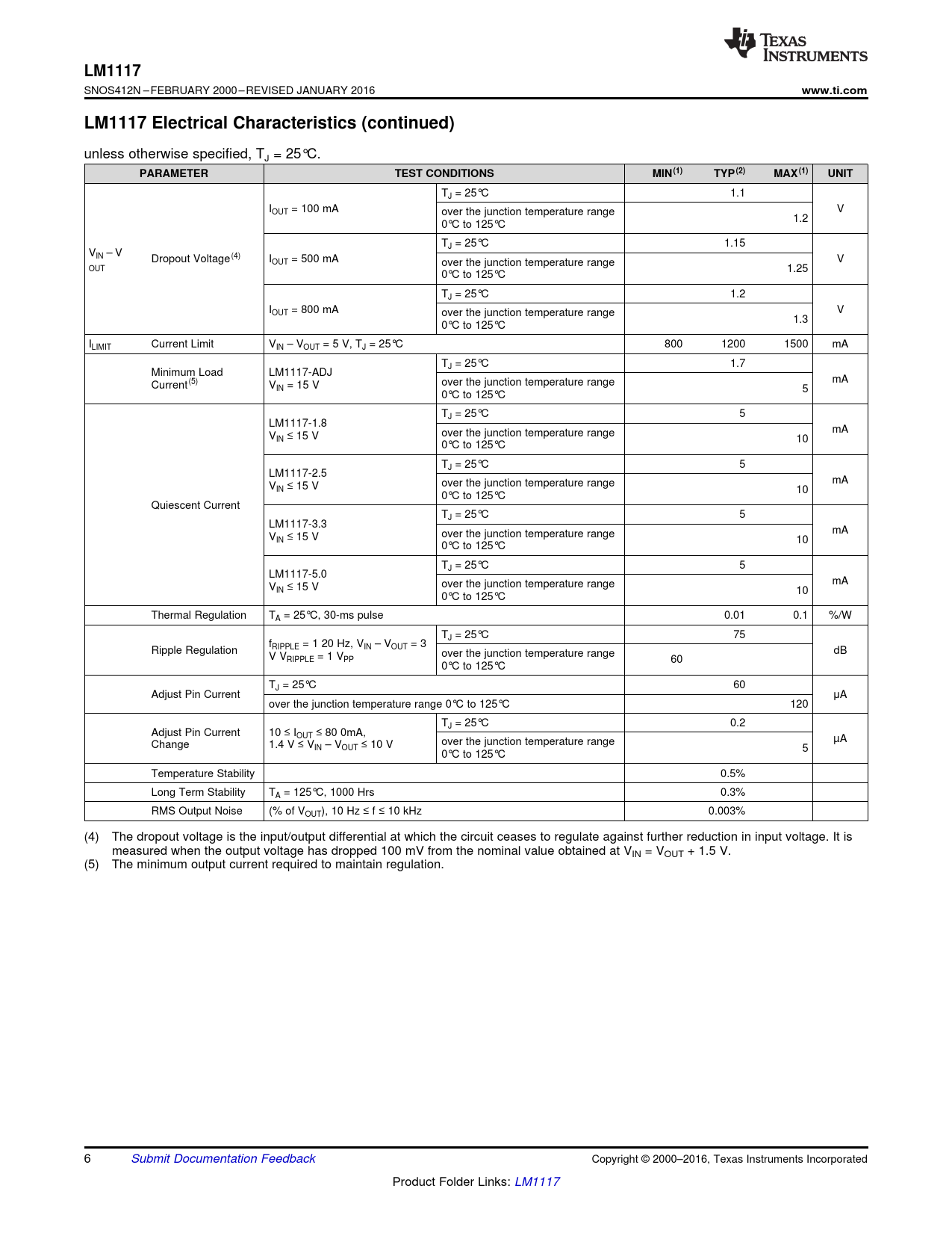 Datasheet LM1117 (Texas Instruments) - 6