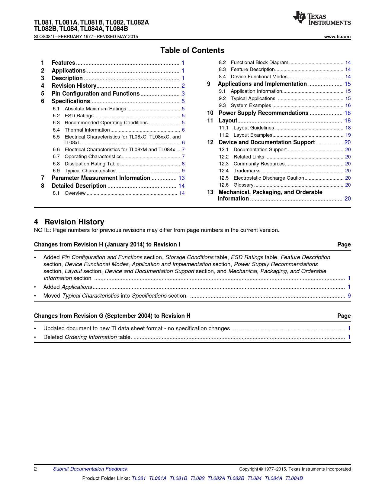 Changes from Revision H (January 2014) to Revision I Page