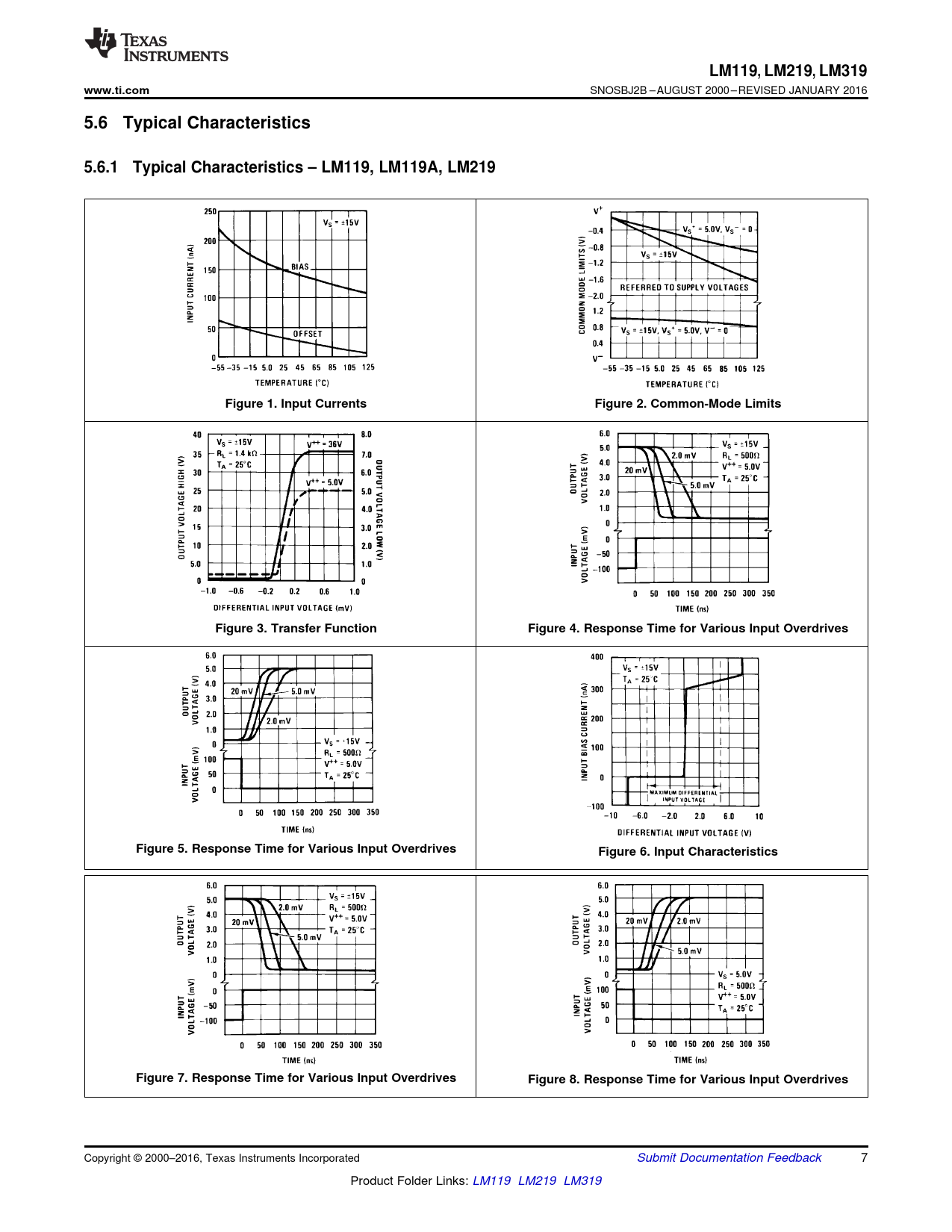 LM119,. LM219. , LM319. www.ti.com. 5.6 Typical Characteristics. 5.6.1 Typical Characteristics – LM119, LM119A, LM219
