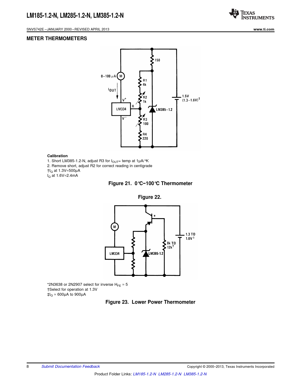 LM185-1.2-N,. LM285-1.2-N. , LM385-1.2-N. www.ti.com. METER THERMOMETERS. Calibration. Figure 21. 0°C−100°C Thermometer. Figure 22