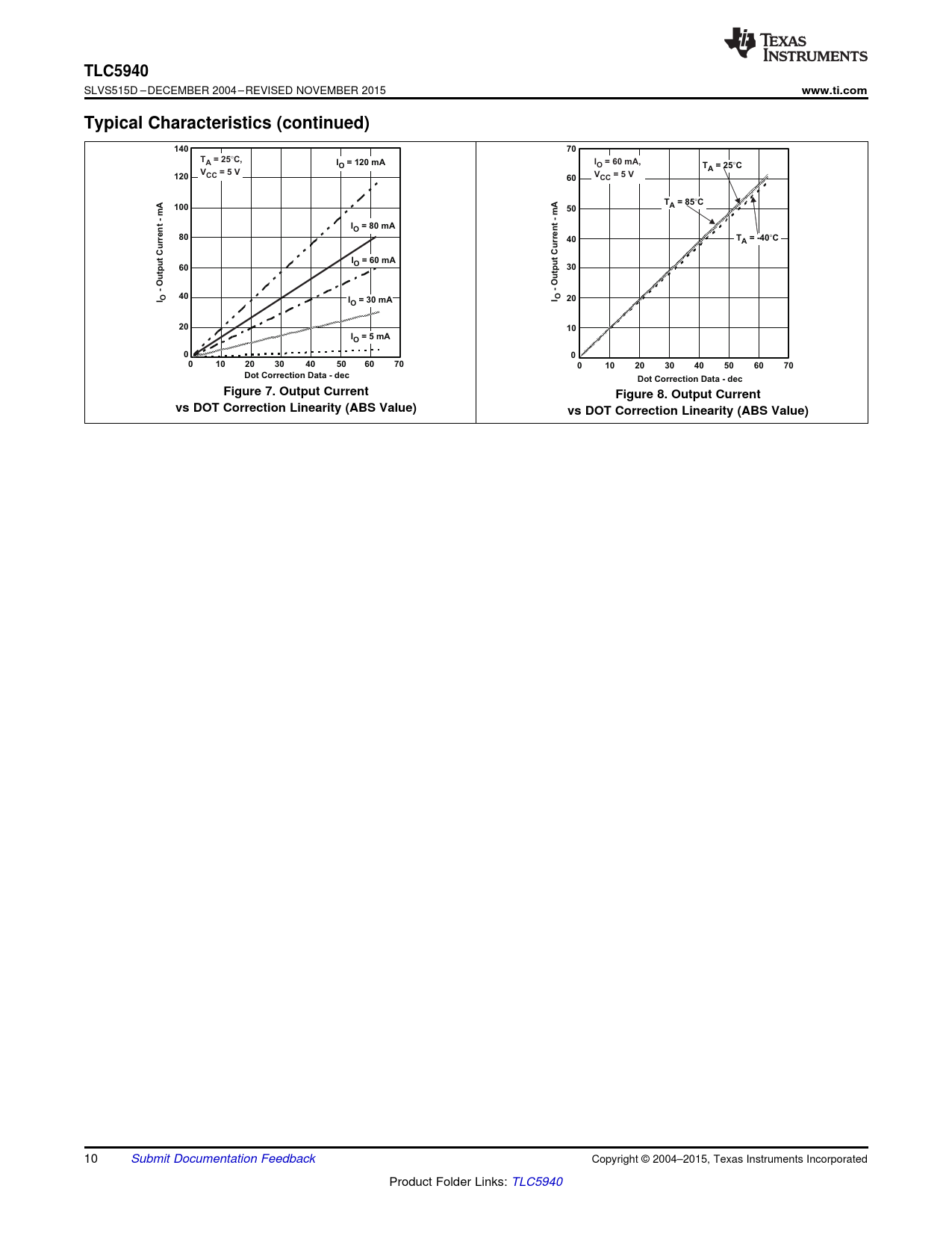 TLC5940. www.ti.com. Typical Characteristics (continued). 140. T = 25. = 120 mA. = 60 mA,. T = 25 C. = 5 V. 120. T = 85 C. 100. = 80 mA