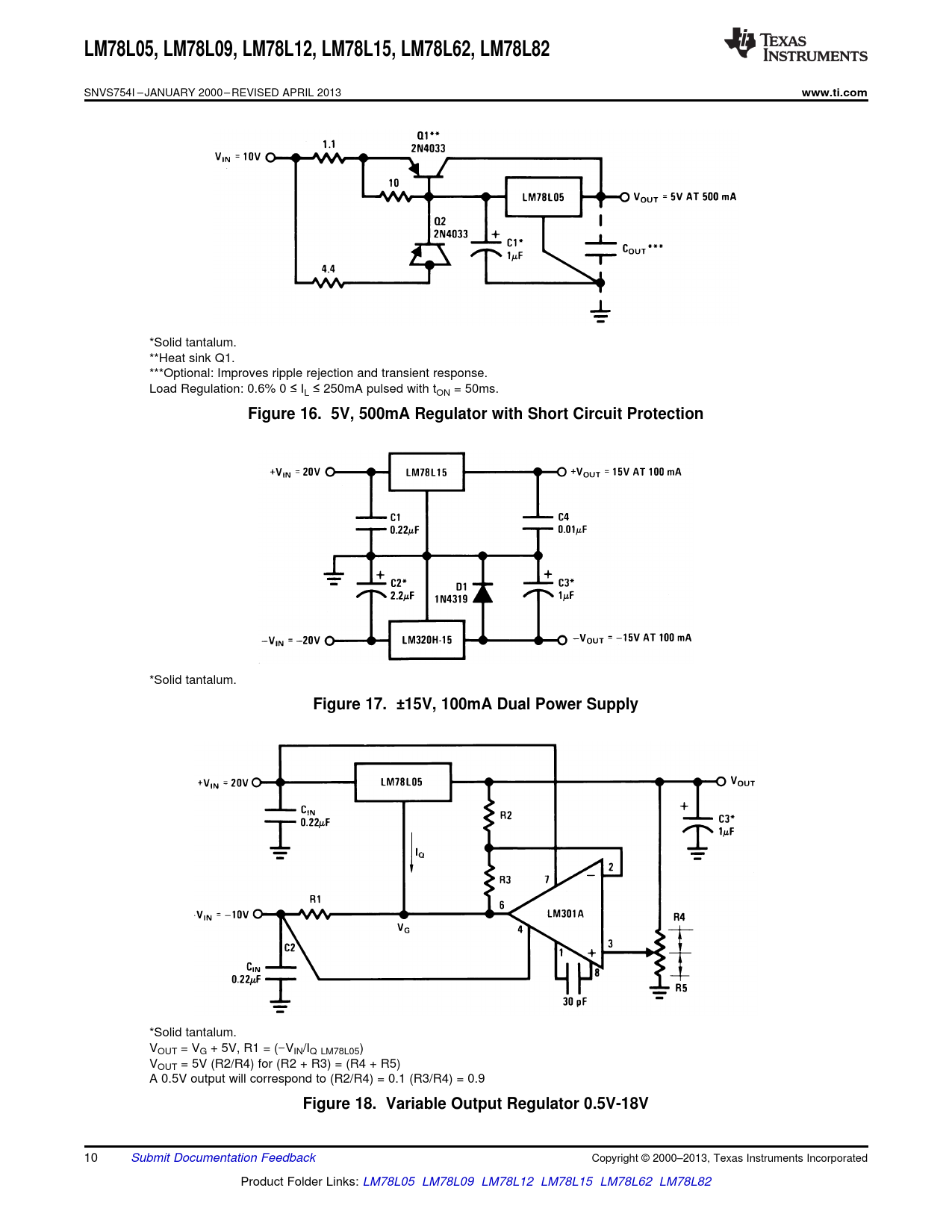 Datasheet LM78L05, LM78L09, LM78L12, LM78L15, LM78L62, LM78L82 (Texas Instruments) - 10