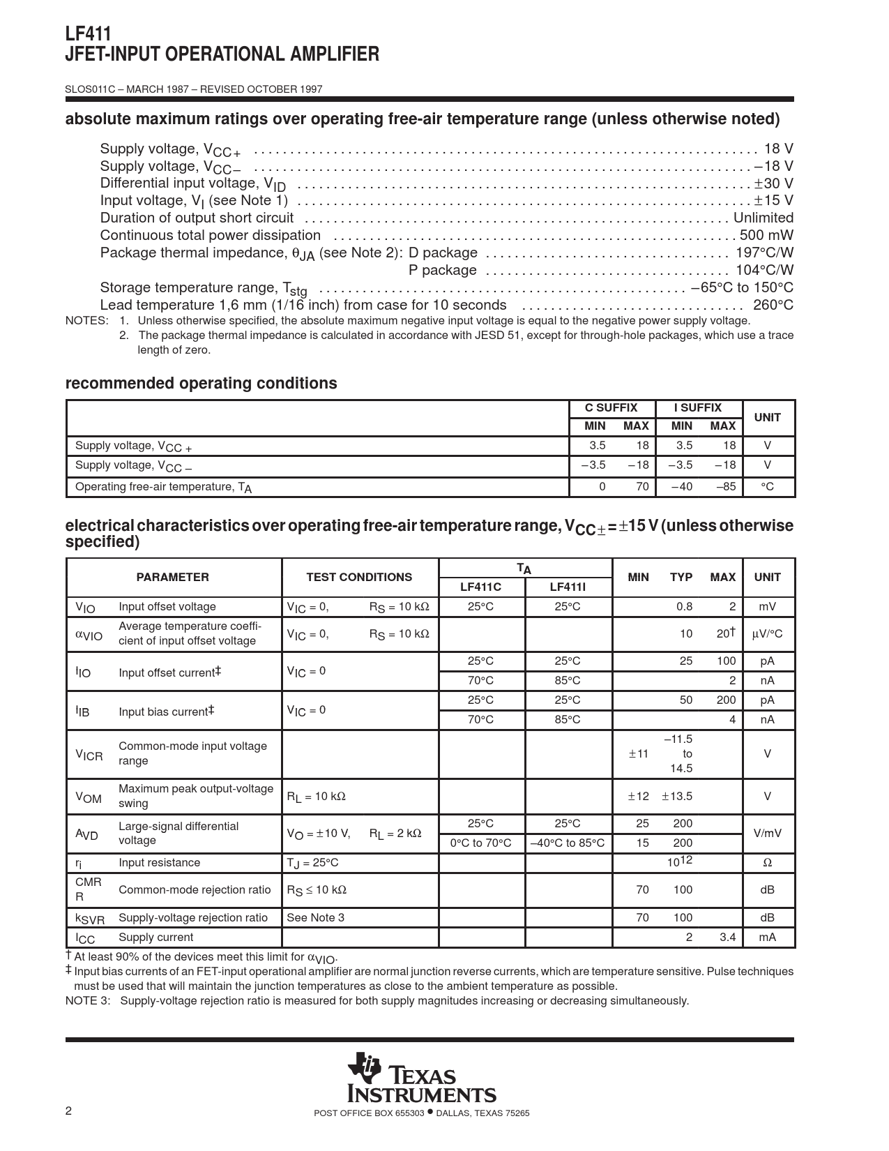 页数 / 页11 / 2 — LF411. JFET-INPUT OPERATIONAL AMPLIFIER