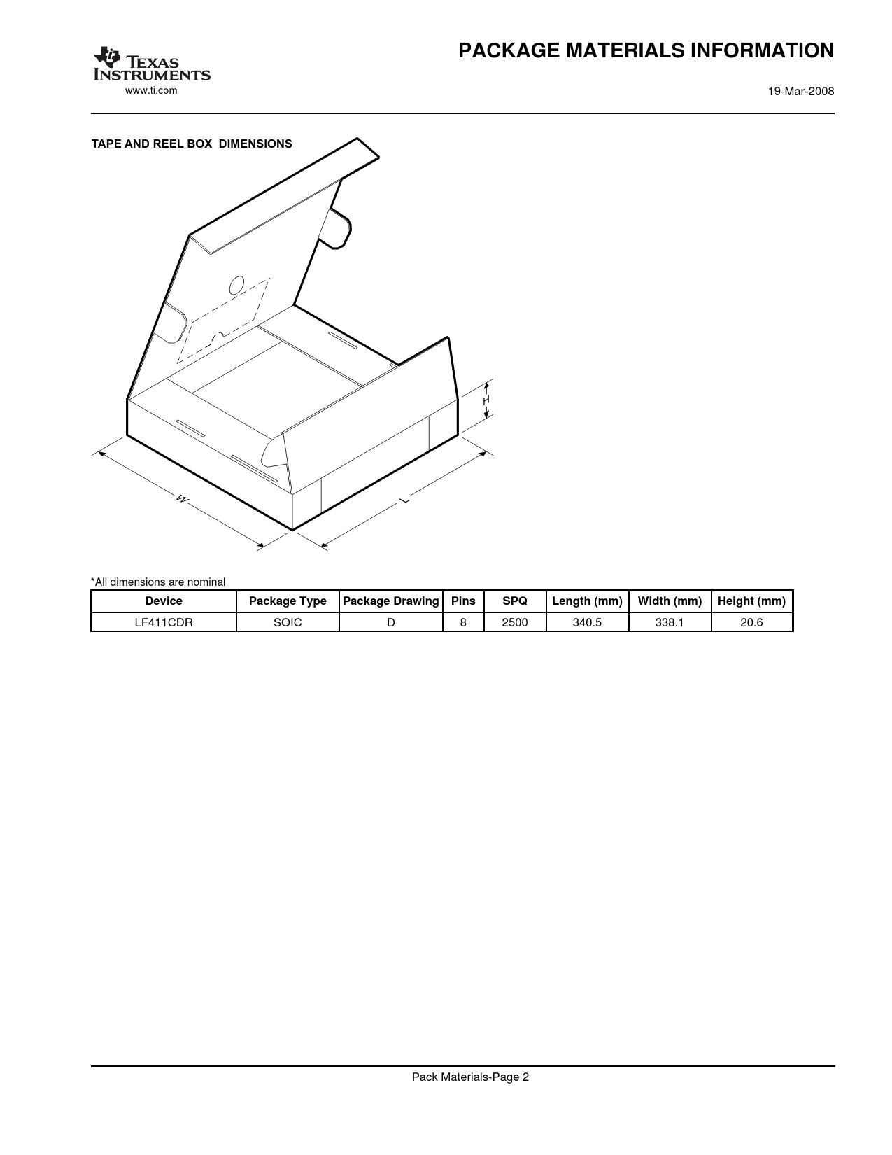 www.ti.com 19-Mar-2008 *All dimensions are nominal